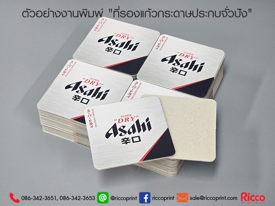 สินค้า | ตัวอย่างงาน ที่รองแก้วกระดาษประกบจั่วปัง |