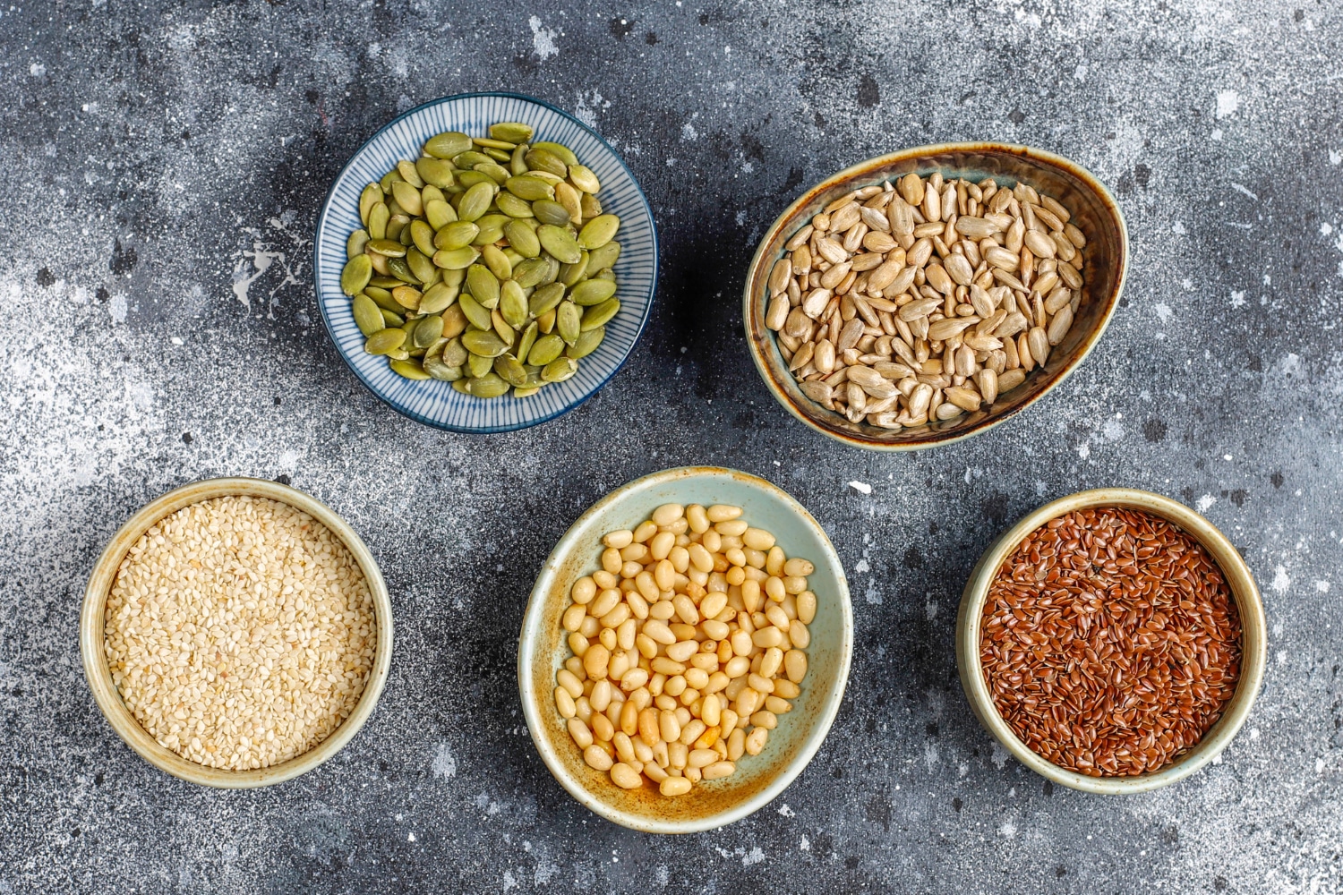 ธัญพืช เช่น เมล็ดดอกทานตะวัน เมล็ดงา ข้าวโอ๊ต เป็นต้น มีโปรตีนสูง มีไขมันดี และวิตามินเอสูง ขณะเดียวกันก็มีสารต้านอนุมูลอิสระที่ช่วยเพิ่มสารอาหารกระตุ้นสมอง อย่างแมกนีเซียม ทำให้เลือดไปหล่อเลี้ยงสมองได้ดี อีกทั้งยังมีโฟเลต วิตามินบี 6 และไทแอมีน (วิตามินบี 1) ที่ช่วยเพิ่มความจำ และสมาธิได้ดี