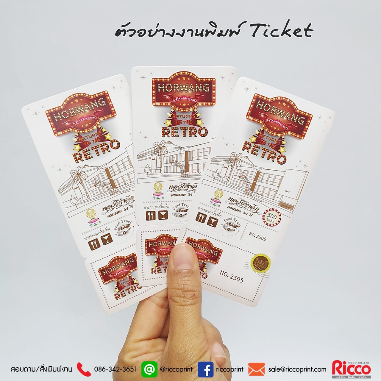 ตัวอย่างงานพิมพ์บัตรเข้างาน “หอวังรำลึก”