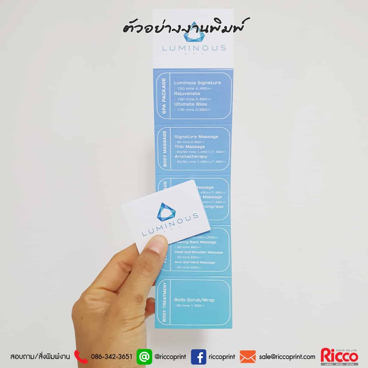 ตัวอย่างงานพิมพ์ Menu Spa (Check-In)