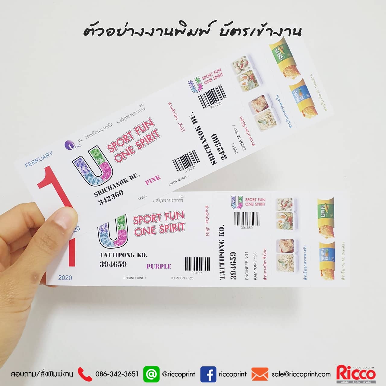 ตัวอย่างงานพิมพ์ บัตรเข้างานUTAC